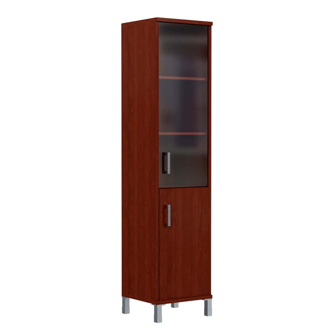 Стеллаж стекло тонированное выглядит стильно и элегантно. Благородная тонировка стеклянной дверцы придает модели изысканный вид. Мебель презентабельно смотрится в интерьере, украшая его своим присутствием. Фурнитура и опоры гармонично сочетаются с каркасом и дверками из стекла. Вся композиция эстетична и респектабельна. Шкаф вместителен и практичен.