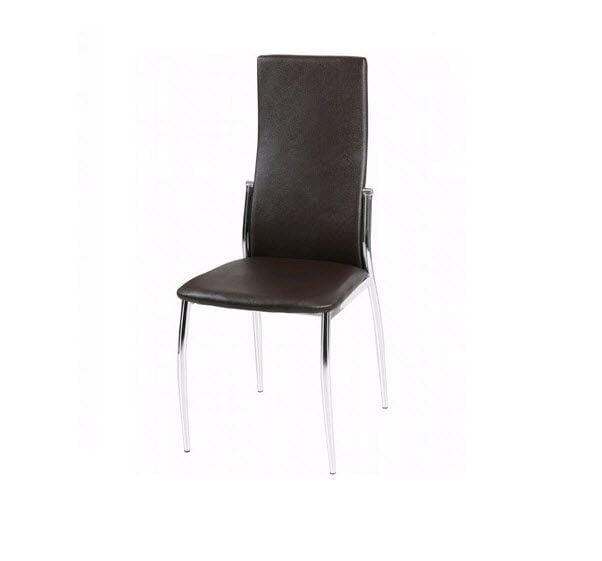 Стул для кухни с высокой спинкой на хромированном каркасе. Спинка стула довольно плотная и изогнута для удобства. Стул имеет презентабельный вид, сиденье-удобное, способствующее расслаблению, разработанное согласно правилам эргономики